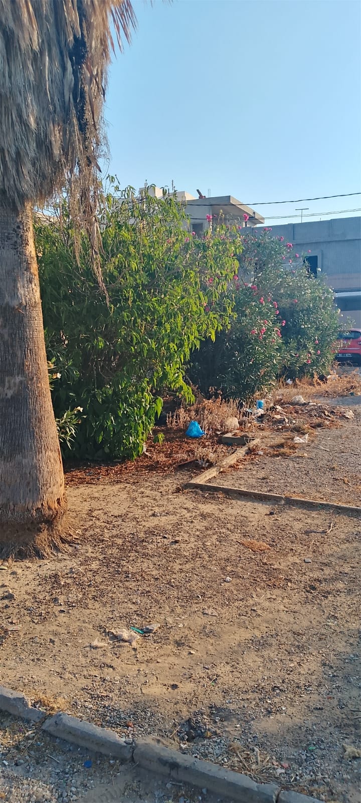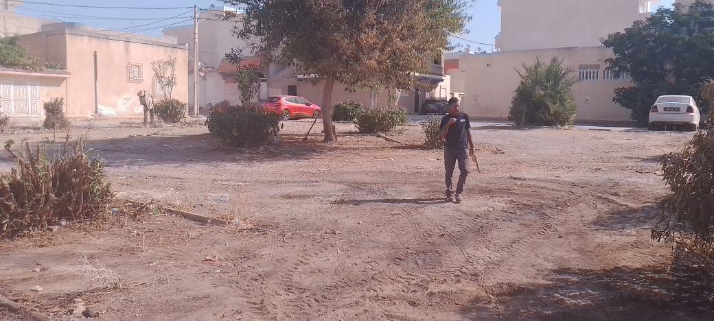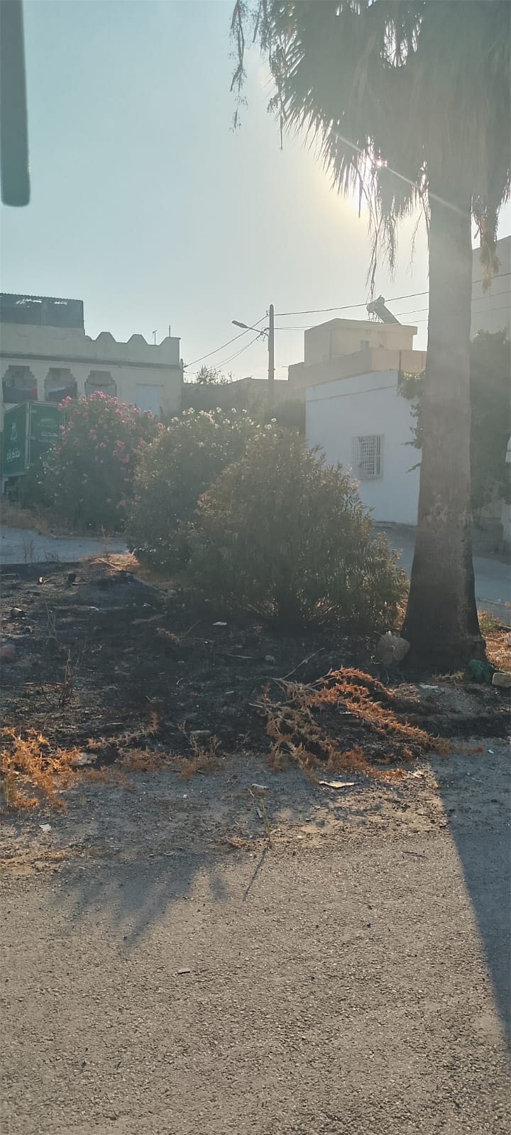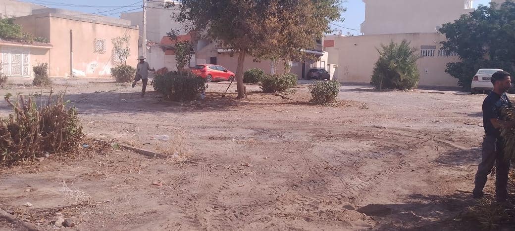المنطقة الخضراء بحي القصر قبل و بعد التدخل (رفع الأوساخ، جهر، تقليع الأعشاب الطفيلية، تشذيب الأشجار) بتاريخ 19 أوت 2025