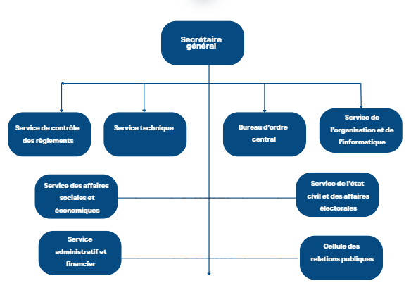 Placé sous l’autorité du maire, il est chargé, en plus de ses fonctions définies par l’article 67 nouveau de la loi n°43 de 1985, de superviser le bureau d’ordre central...